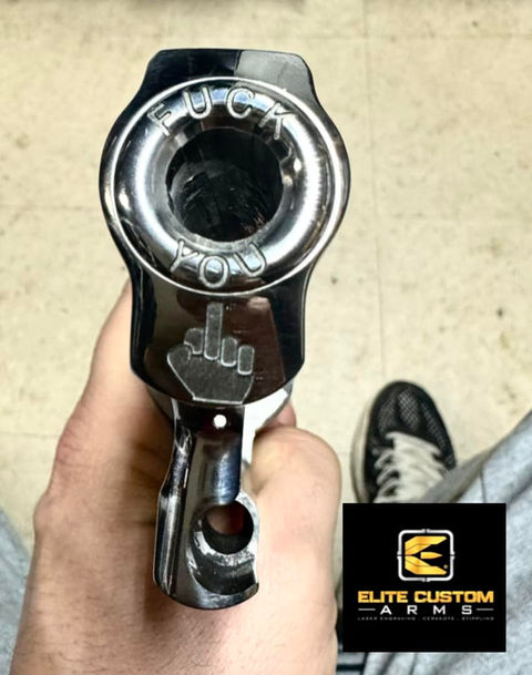 Elite Custom Arms is professionally trained and certified on our high-powered 50W fiber laser. Our laser offers versatility, from intricate 3D deep engraving to subtle frosting accents. We can engrave on aluminum, titanium, brass, steel, stainless steel, copper, gold, silver, most polymers, and some plastics.